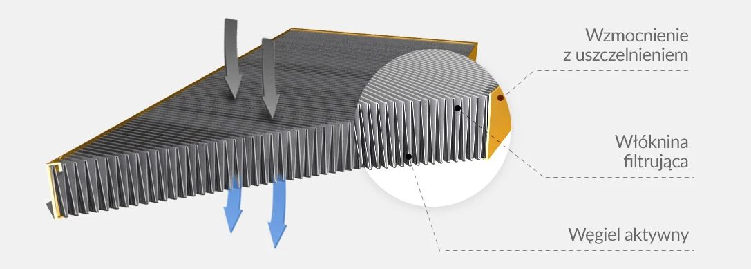 W produkcji naszych filtrów wykorzystujemy specjalne, poliestrowo-polipropylenowe włókniny, które pozwalają na podniesienie stopnia absorpcyjności zanieczyszczeń (w tym także bakterii oraz pyłków obecnych w powietrzu) oraz warunkują bardzo wysoką przepustowość naszych realizacji. To dzięki tym elementom filtry kabinowe skutecznie pochłaniają także nieprzyjemne i wywołujące uczucie dyskomfortu zapachy czy szkodliwe dla układu oddechowego gazy. Warto podkreślić, że są częściami niezawierającymi substancji szkodliwych dla zdrowia i uznanych za niebezpieczne.